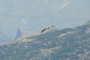 Ve čtvrtek 6. července se už musíme vydat na přejezd prakticky celé Albánie. Začínáme jízdou podél severního pobřeží Skadarského jezera, kde se potkáváme s volavkou rusohlavou nebo červenou, dále s rybáky bahenními nebo kormorány malými. Že je Albánie také země hor je vidět od počátku našeho průjezdu, který je omezován neustálými dopravními značkami, určujícími jízdu rychlostí 50 km za hodinu. Přes Shkodër, Lezhe a Durrës dojíždíme do první zastávky – národního parku Divjakë-Karavasta, kde chceme poznat záliv a lagunu Karavastasë. Bohužel moc života tu nenacházíme, alespoň pokud jde o avizovaný výskyt ptáků. Dojem si vylepšujeme na salině u Vlorë, kde na aktivních nádržích a laguně Nartës můžeme zaznamenat například rybáky malé, pisily čáponohé, kulíky mořské, plameňáky růžové, ale hlavně minimálně dvě desítky racků tenkozobých a jednoho ouhorlíka stepního. Lokalita si zaslouží daleko více času, stejně jako Ulcinjská solana, ale také musí čelit tlaku na vybudování nového letiště. My musíme na ubytování ve městě Gjirokastër, které leží už v blízkosti řeckých hranic. Ráno si snažíme toto město lépe prohlédnout, hlavně jeho historickou část s hradem, která je dokonce registrovaná v UNESCO. Město na nás působí opravdu zajímavým a exotickým dojmem. Ještě před polednem vyrážíme na jih, když pár minut po odjezdu mě u silnice upoutá silueta dospělého supa mrchožravého. Sedá si dokonce do pokoseného pole obilí, párkrát nízko zakrouží, takže mé první setkání s tímto dravcem nabírá pěkný rozměr.